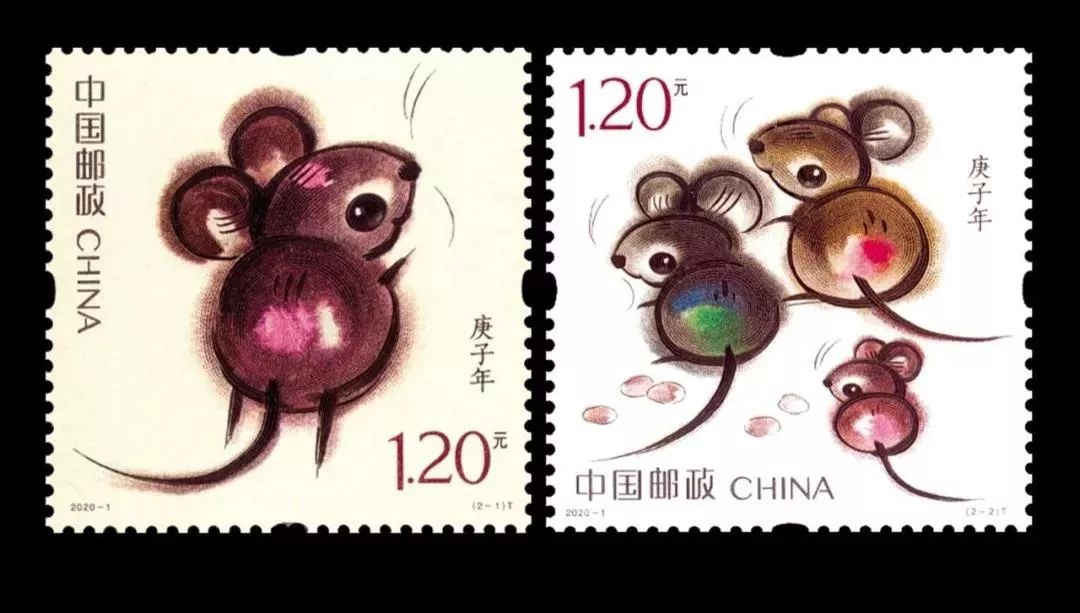 《庚子年》特种邮票延续第四轮生肖邮票的创作理念,采用小写意装饰画法。
