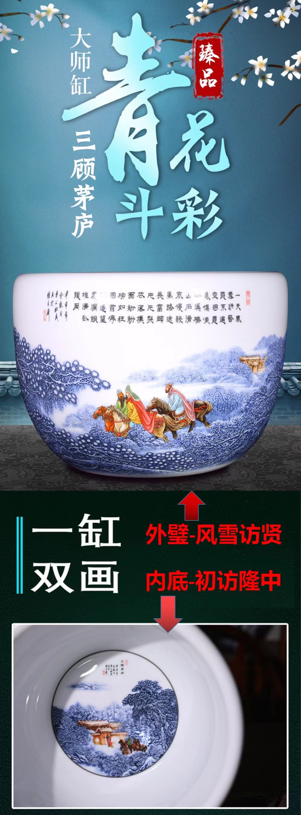 张松茂一缸双画《三顾茅庐》青花斗彩大师珍藏缸 风雪访贤 初访隆中瓷板画原型再造瓷画大缸