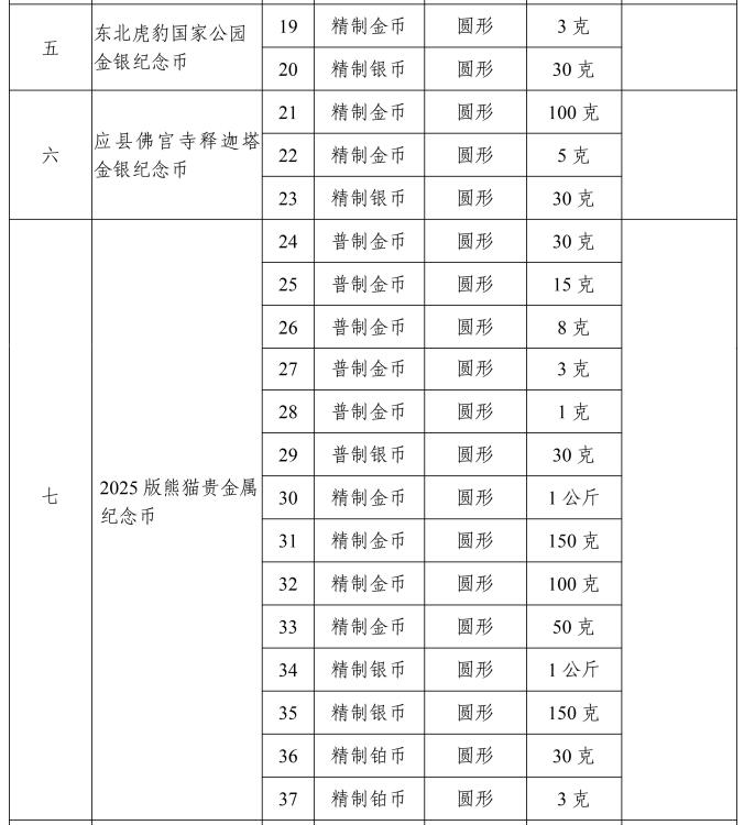 根据中国人民银行贵金属纪念币项目发行计划,2024年将发行10个项目、53个品种。10个项目包括:中国极地科学考察金银纪念币、中国纸币千年金银纪念币、2024吉祥文化金银纪念币、国家宝藏(启蒙奠基)金银纪念币、东北虎豹国家公园金银纪念币、应县佛宫寺释迦塔金银纪念币、2025版熊猫贵金属纪念币、2025中国乙巳(蛇)年贵金属纪念币、中山大学建校100周年金银纪念币、2025年贺岁金银纪念币。中国人民银行可根据宣传党和国家重大活动、伟大建设成就、中华民族优秀文化、人类文明成果的实际需要,对贵金属纪念币项目发行计划进行调整。具体发行信息将在发行前公告。