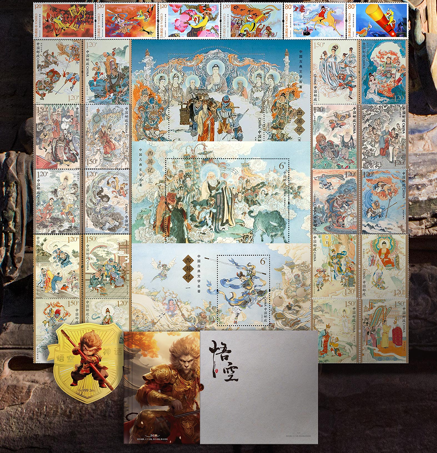 黑神话火爆全网《悟空》西游记大闹天宫珍邮全集重磅上新!中国邮政发行发行过的悟空主题珍邮全收录①《西游记》邮票第一组到第五组一次全藏,共29枚珍邮,套票、型张一枚不落;②《大闹天宫》特种动画珍邮,一套6枚;③ 3mg彩金“悟空”手机贴,随机携带的经典形象。可用可贴可送可藏!