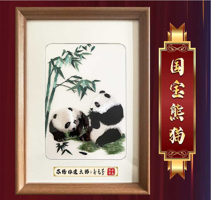 中华苏绣非遗传承大师俞元芬《国宝熊猫》苏绣艺术珍品带画框非遗文化收藏送礼家居摆件