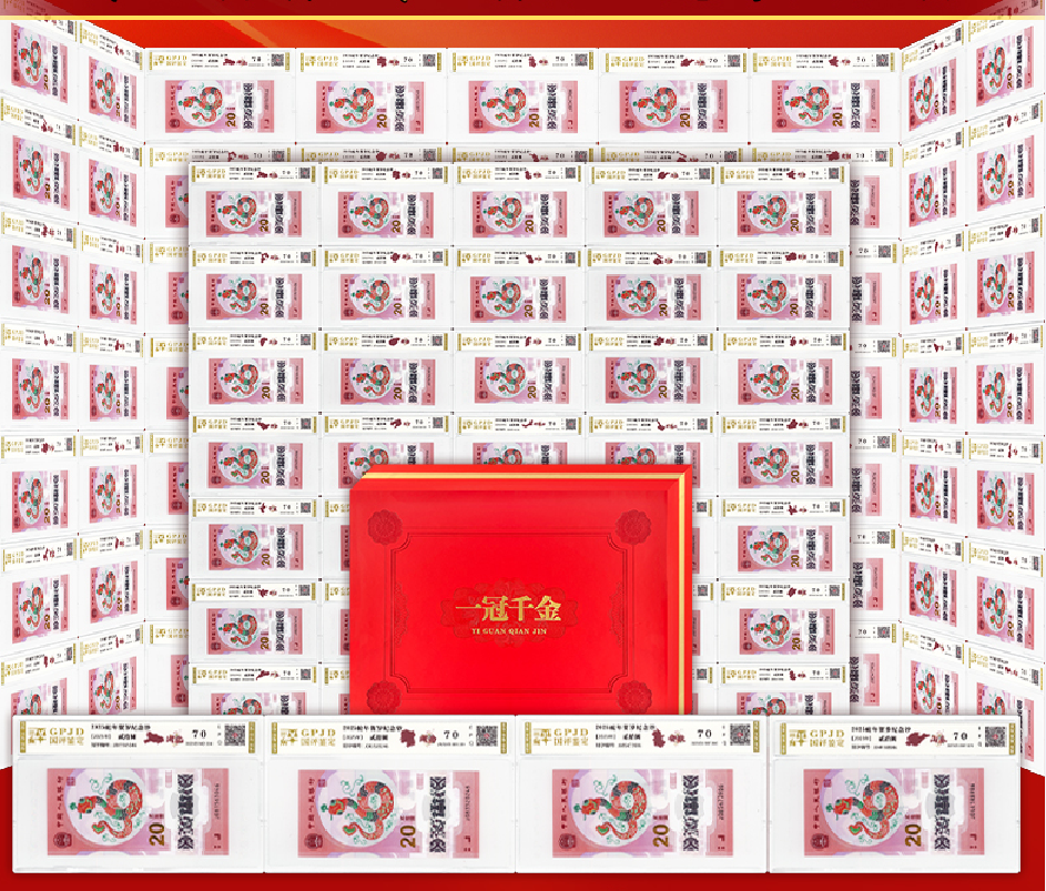 藏全不藏单《一冠千金》生肖蛇钞冠号大全套,将全国30余个省市区发行的生肖蛇年纪念钞冠号大全一网打尽,而且是极其珍贵的尾一同号纪念钞,蛇年生肖纪念钞32个冠号钞罕见集齐。另赠送钱到家清代三代帝王乾隆嘉庆道光通宝古钱币封装版收藏。