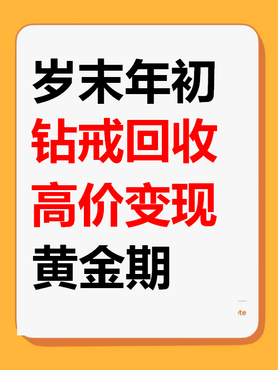 家里有闲置钻戒的宝子,别再等了!不管是款式过时的老钻戒、前任送的纪念款,还是断托不戴的闲置款,现在出手就是蕞赚的时候~ 趁年底需求旺、报价高,把压箱底的钻戒换成真金白银,刚好能给新年添新,买新首饰、办年货都够用!