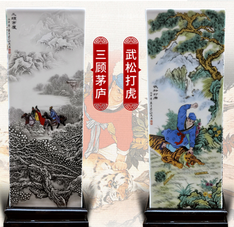 中国工艺美术大师、陶瓷泰斗张松茂大师巨制《四大名著四方尊》,分别为武松打虎、三顾茅庐、悟空收心、宝黛初会四幅瓷板画,四大名著四幅画面,一尊四方尊相当于四副瓷板画。礼藏臻品,四方尊瓷,凝聚了张松茂大师七十年艺术功力。景德镇陶瓷粉彩工艺秘制,四大名著,瓷画故事合璧,大器天成,不可错过。