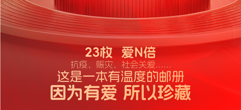 中国公益附捐主题邮票珍藏册《附捐特种珍邮》收录23枚有温度的邮票,包含众志成城抗击疫情附捐特邮抢藏,1984儿童新中国附捐邮票、1991年赈灾邮票、98抗洪附票附捐邮票、2003非典特发附捐邮票,汶川抗震特别增发附票附捐邮票等。体现爱心与奉献,因为有爱,所以珍藏。