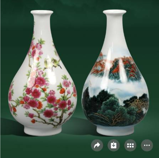 中国工艺美术大师、瓷坛双宗师张松茂徐亚凤夫妇共创《宗师双绝》玉壶春瓶对瓶一套,包含张松茂大师《井冈春色》大师尊与徐亚凤大师《春汛》大师尊,玉壶春经典器型,山水花鸟对瓶设计,融独门绝技与代表题材,大师瓷器收藏价值高。