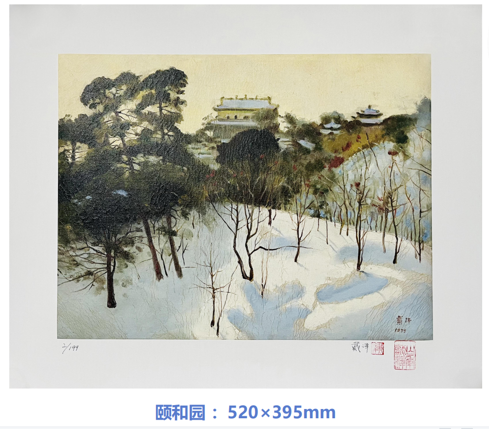 中央美院百岁教授、新中国美术教育奠基人——戴泽老师签名限量精品版画,共6种,分别为都门瑞雪、颐和园、喜马拉雅山下、福禄、福豹、大会堂。每幅均有作品编号,戴泽亲笔签名、戴泽印章,背面为戴泽之女声明。同时配备收藏证书。6种版画原作均为老师艺术生涯的代表作品,限量抢藏!