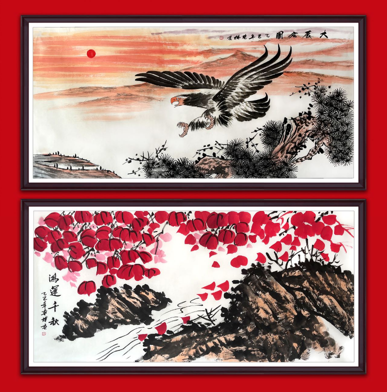 齐氏后裔齐艺博大师《鸿业腾飞》两幅作品16平尺国画手绘真迹 大展宏图+鸿运千秋双书画收藏