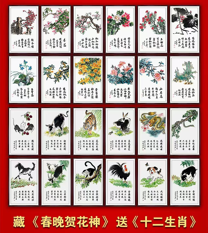 封神级节目《贺花神》春晚燃爆!一年十二月,月月有花香!美协会员鼎力创作春晚同款《贺花神》十二花神书画经典巨作,双美院教授作品十二生肖书画免费送。12花神书画融合诗词、书法、国画,中国四大传统文化融合的巨作,24幅作品大师诗书画特惠收藏。